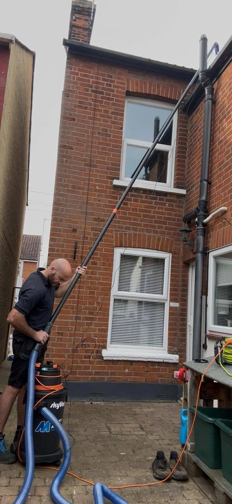 Keep your gutters flowing freely with professional gutter clearing in Colchester, Stanway, and surrounding areas. We use a ground-based vacuum system to remove leaves, moss, and debris safely without ladders.